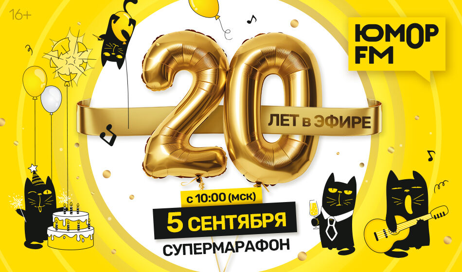5 сентября Юмор ФМ проведет грандиозный супермарафон. Вас ждет двадцать суперзвезд и десять часов лучших шуток и песен. Весь день, с 10:00 до 20:00 (мск), в студию будут приходить известные музыканты, юмористы, телеведущие, чтобы поздравить самое веселое радио страны с юбилеем.
