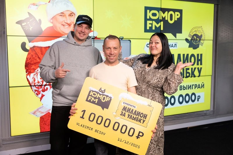 Праздничный эфир «Юмор FM» завершился триумфом для Владимира Бесова из Челябинска. 23 декабря в прямом эфире утреннего «Шутки Шоу» ведущие торжественно вручили счастливчику чек на 1 000 000 рублей.